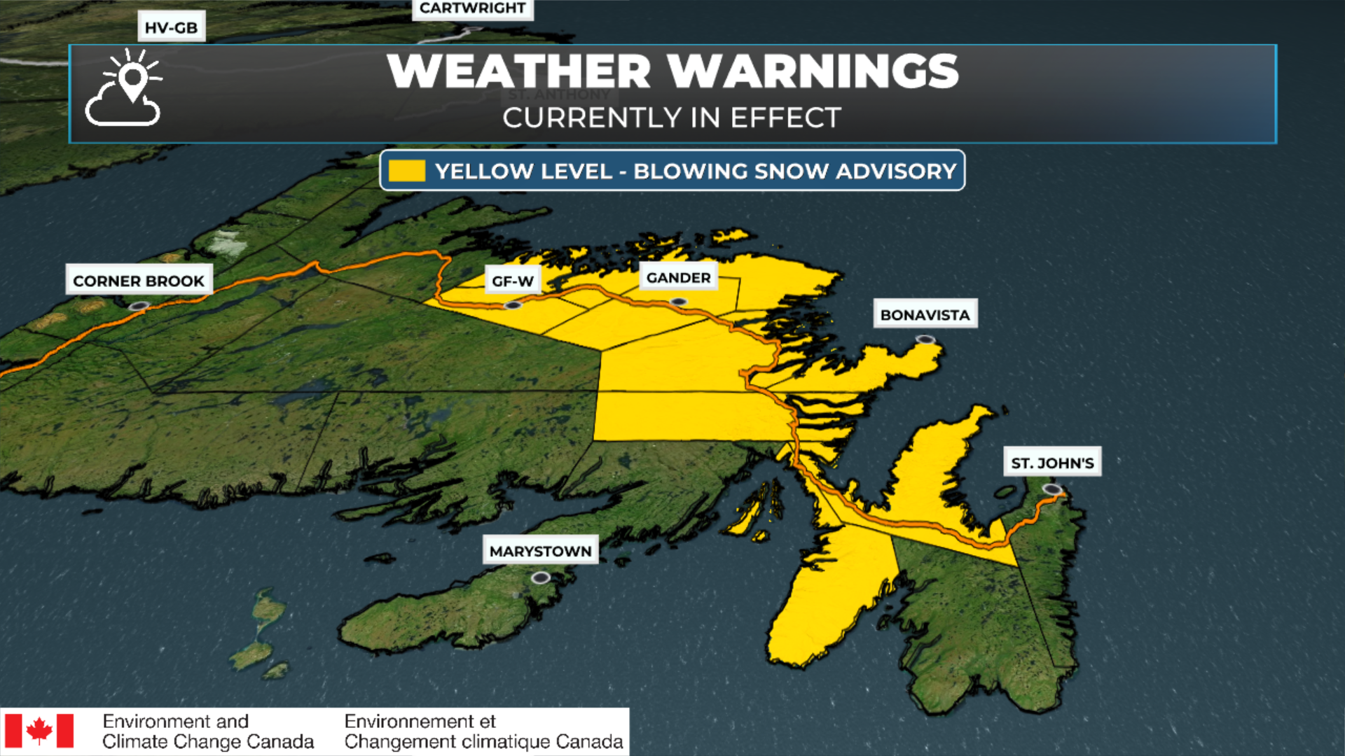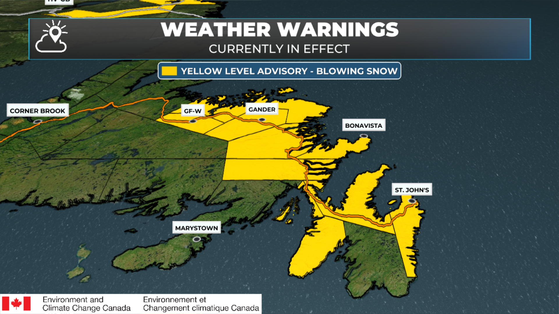 Blowing Snow Advisories, Winter Storm Warning and Wind Warnings Issued for Newfoundland by Environment Canada for Saturday Night and Sunday
