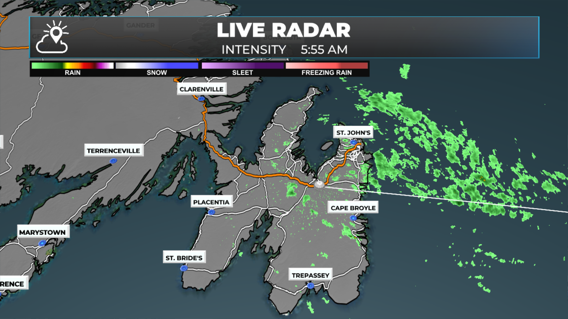 On top of the cooler air, we are still left with lingering showers this morning for a good chunk of the Island. As of just before 6 AM both Gander and St. John’s International Airports are reporting light rain showers. I do suspect that some areas of central may have some wet flakes mixed in with those rain showers at this early hour.