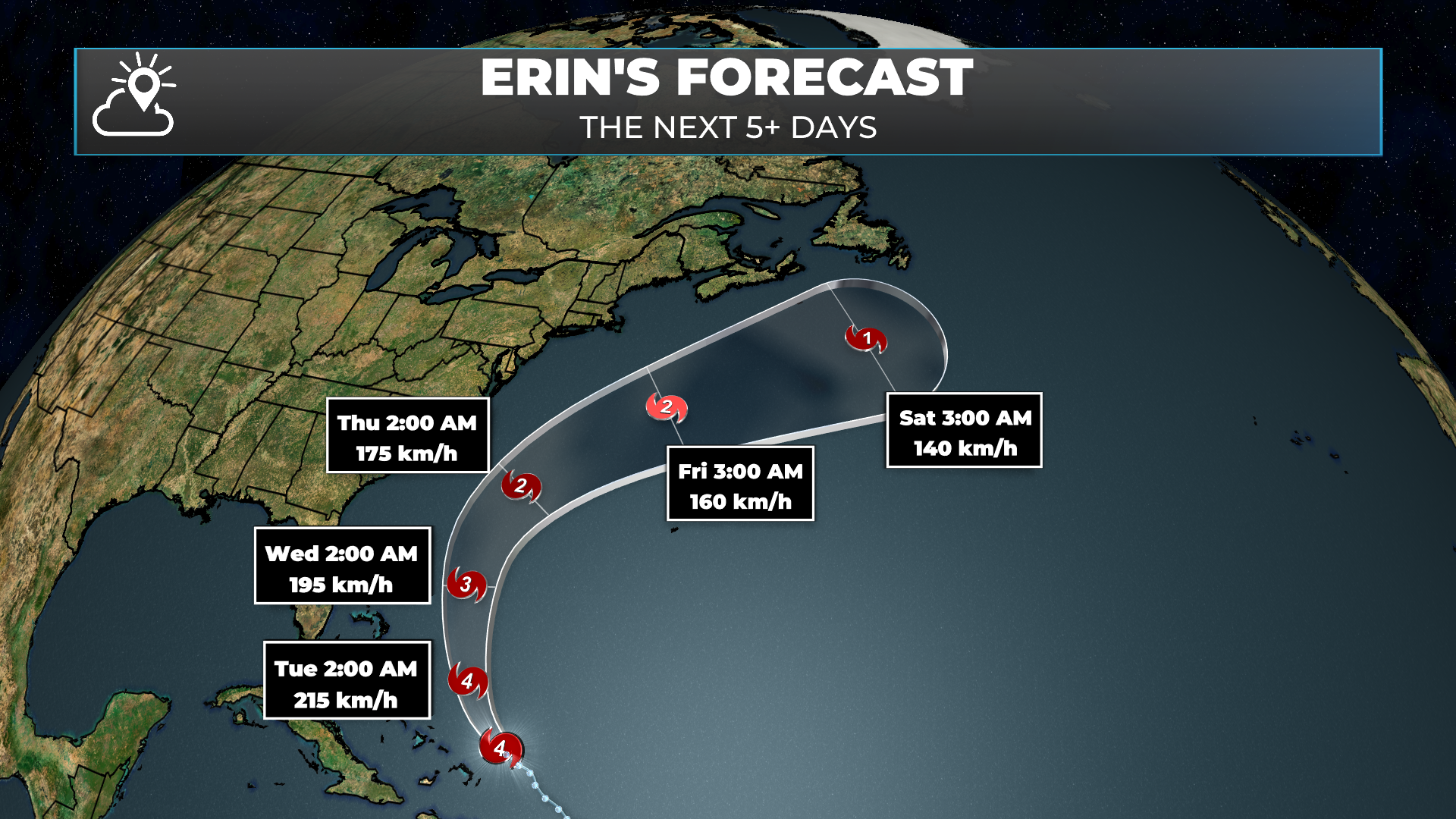Hurricane Erin is a dangerous Category 4 Hurricane located 175 kilometers northeast of Grand Turk Island. The storm is currently forecast to pass SOUTHEST of Newfoundland between Friday and Saturday. Impacts, at this time, on NL Weather appear to be minimal. Those with ferry crossings slated for Friday/Saturday will want to be on the lookout for Marine Atlantic schedule changes.
