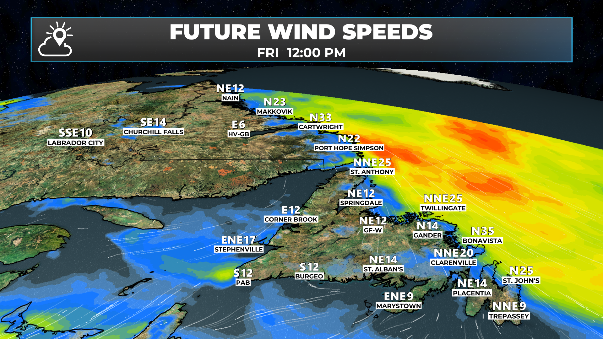 Additionally, breezy conditions are expected along the coast of Labrador, the northeast tip of the Northern Peninsula, and the area along the northeast coast from near Twillingate to the Bonavista Peninsula. Those speeds will gradually slow down throughout the day.
