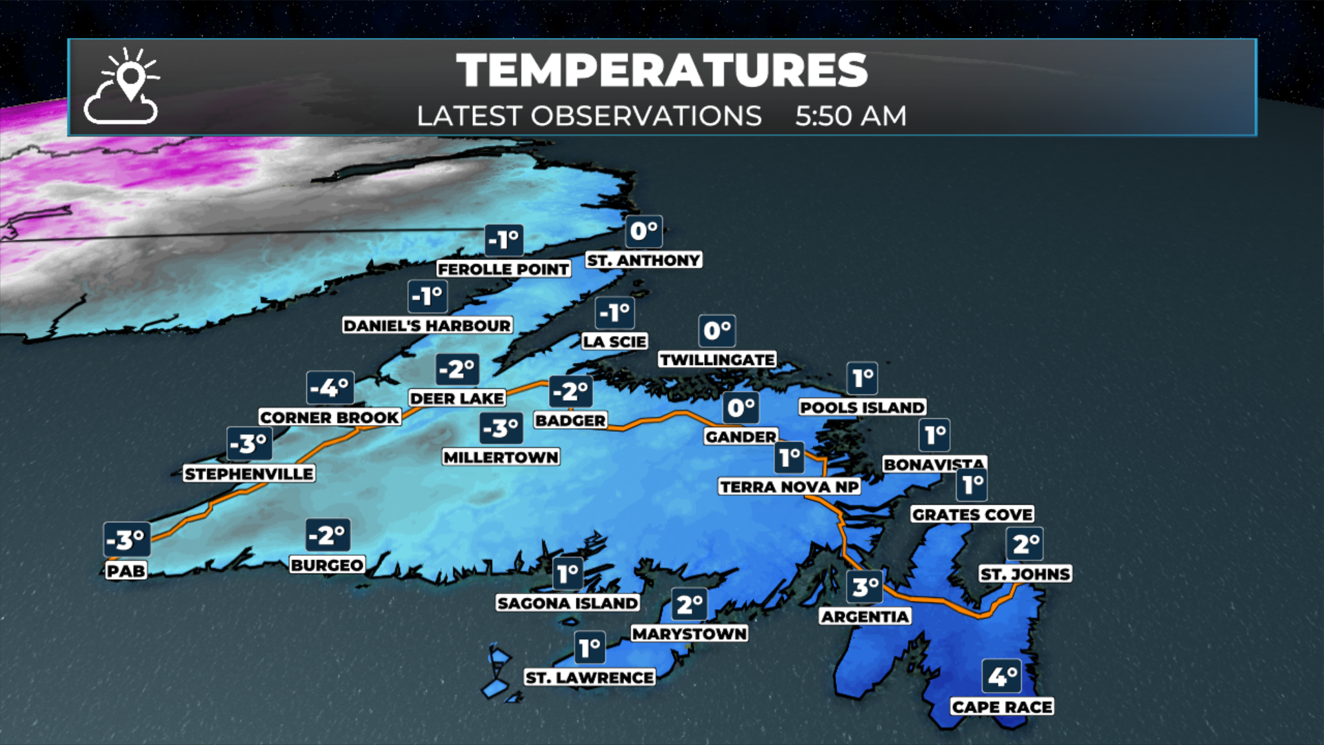 For the Avalon Peninsula, the day starts with rain. Light rain at first, nothing particularly concerning. But as we move through the day, the cold air that moved in overnight is going to deepen and spread across the region. That's when things change a bit.