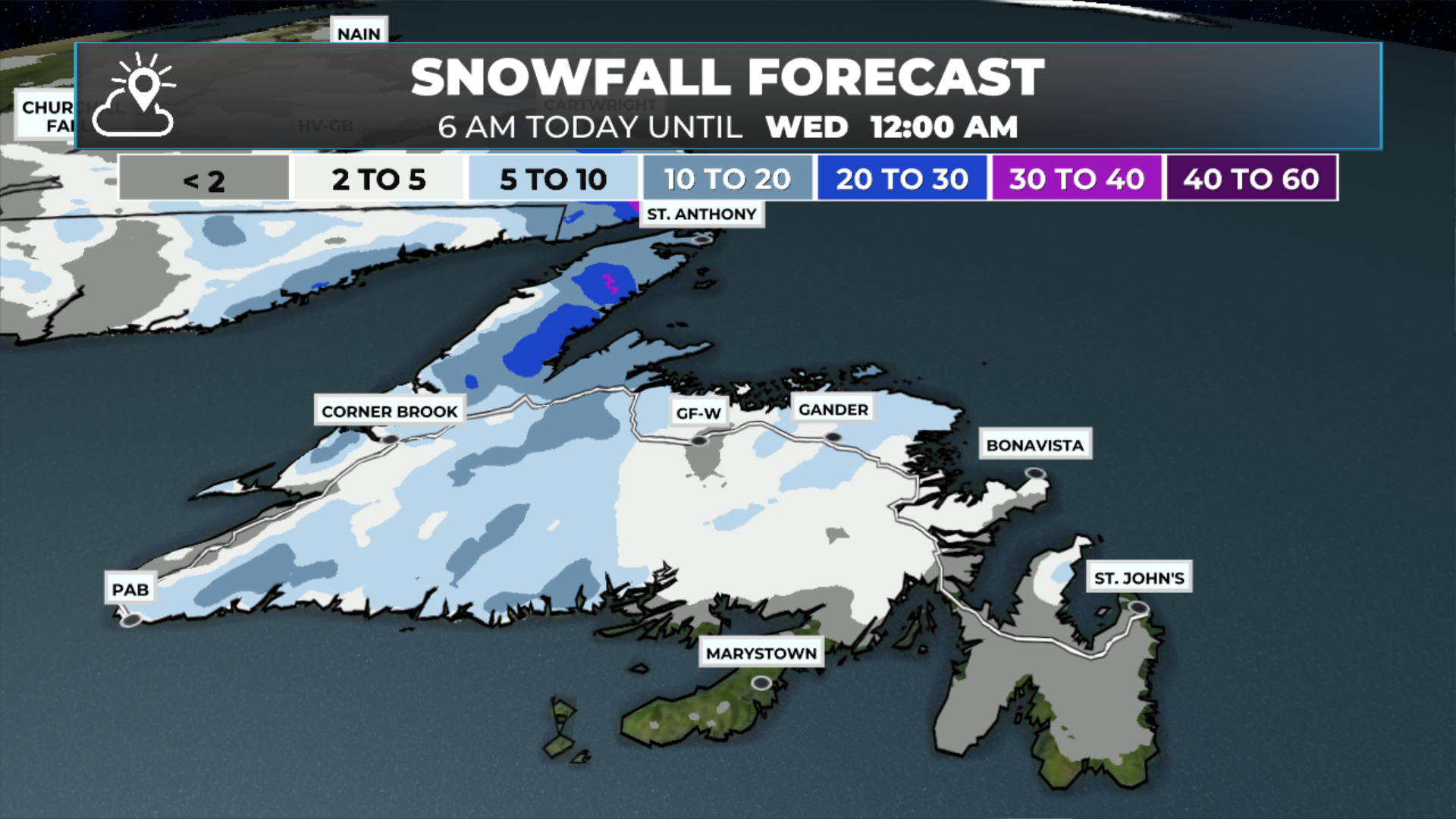 The weather improves for Wednesday… ahead of our next weather maker which arrives early Thursday. That will bring another shot of snow to eastern and southeastern Newfoundland. Amounts look to be in the 5 to 15 cm range as of this morning. As always… stay tuned.