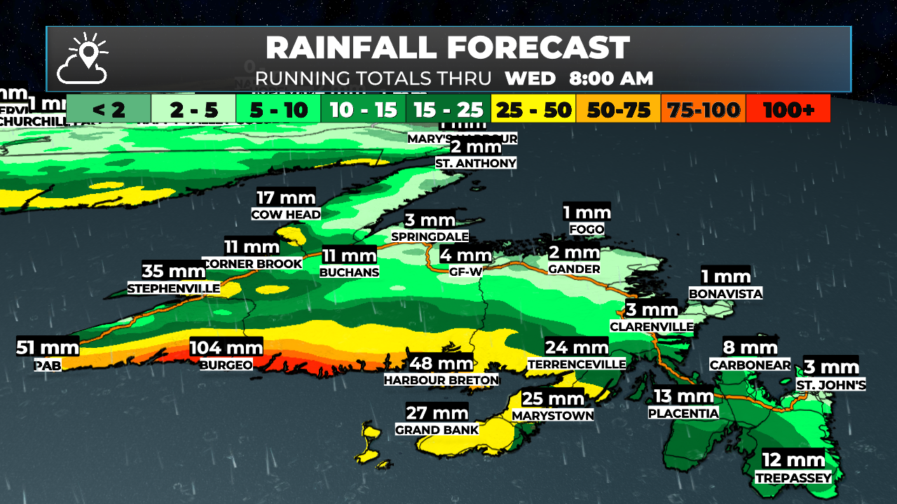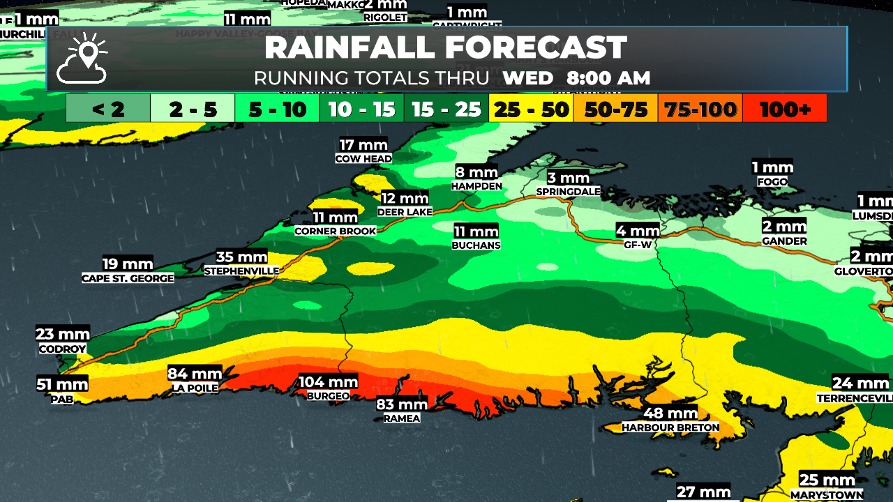 With nearly 100 mm of rain in the forecast between today and early tomorrow for southern areas, like Burgeo, the risk of flooding is very real. I’ll be watching throughout the day, but in order to know what’s going on, I need to hear from you!