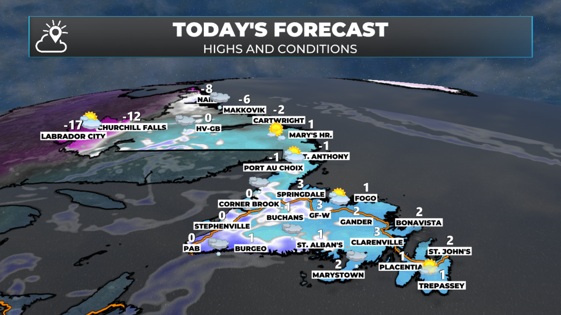 Today’s forecast for Newfoundland and Labrador. March 25, 2026